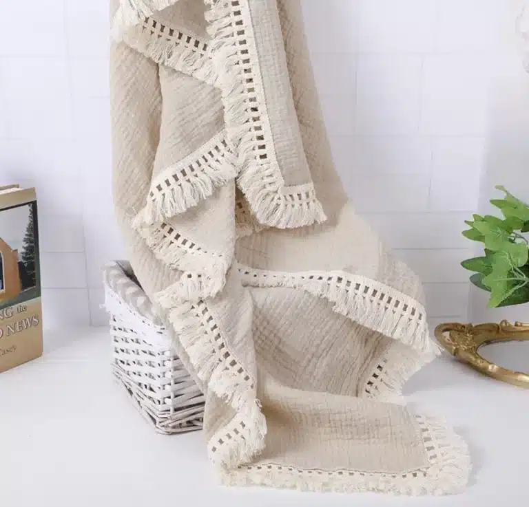 שמיכת כותנה מוסלין טטרה לתינוק בגודל 85×65 בצבע בז