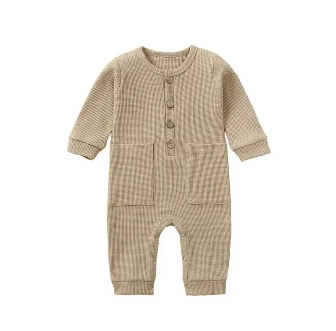 אוברול כותנה פיקה צבע קאמל עם כיסים