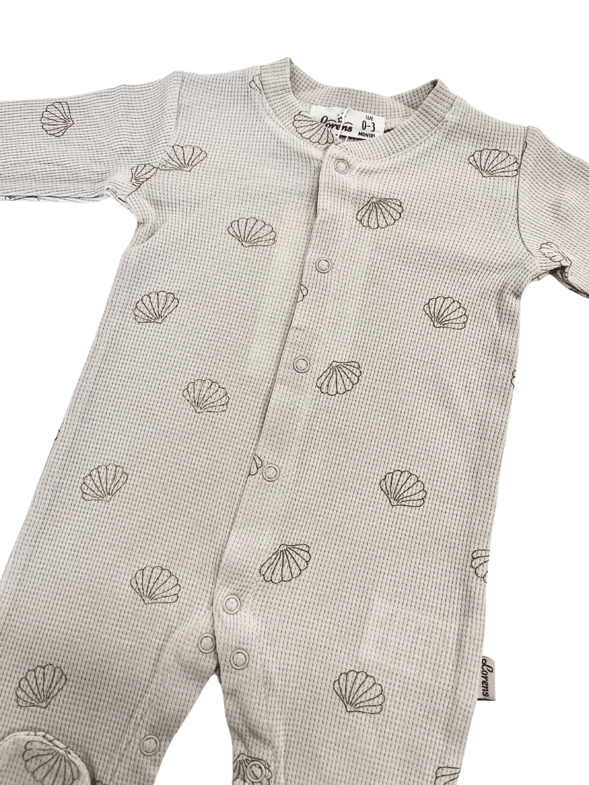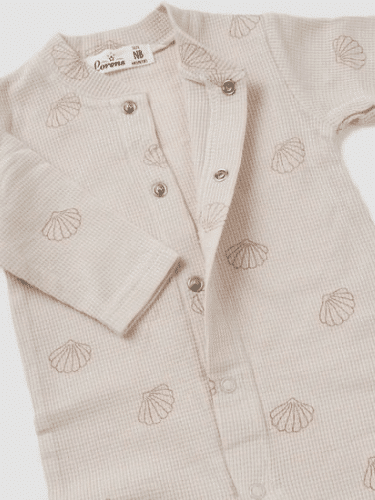 אוברול בגווני בז' טבעיים עם דוגמת צדפים עדינה של מותג הביגוד האיכותי לורנס!