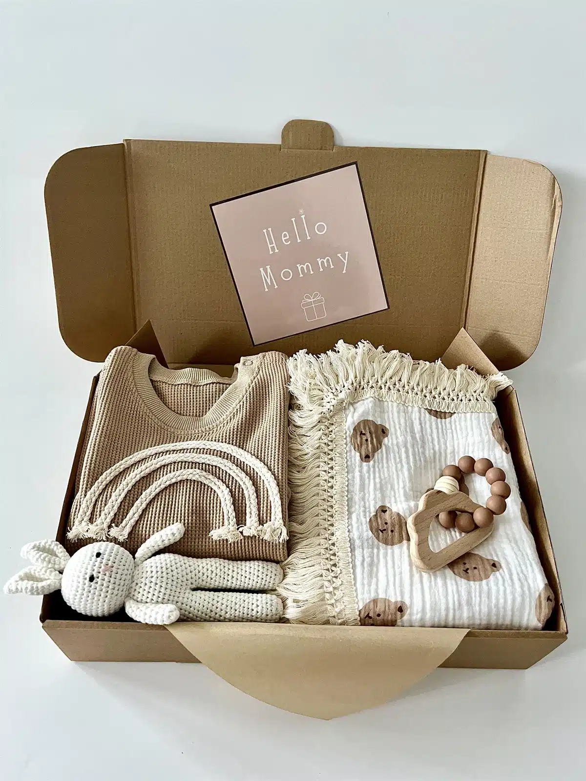 מארז ליולדת מתוק בצבעי יוניסקס מרגיעים ויפים.