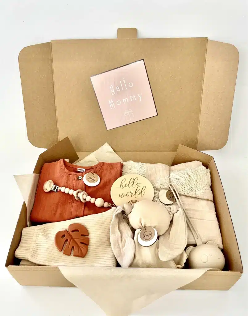 מארז לידה חורש, מארז לתינוק שיכבוש כל יולדת בצבעי האדמה והטבע העמוקים. המארז עשוי מחומרים טבעיים וידידותיים לתינוק וארוז בשיא הסטייל במיוחד ליולדת הטרייה