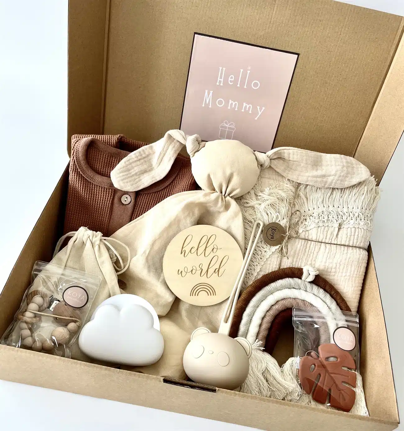 מארז ליולדת מושלם לאם ותינוק, עשוי מחומרים טבעיים ורכים שמותאמים לעור התינוק שילוב צבעים בהשראת הטבע