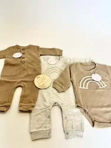 מארז ביגוד מושלם בצבעי יוניסקס שמכיל פרטי לבוש ייחודים ואיכותיים לרך הנולד