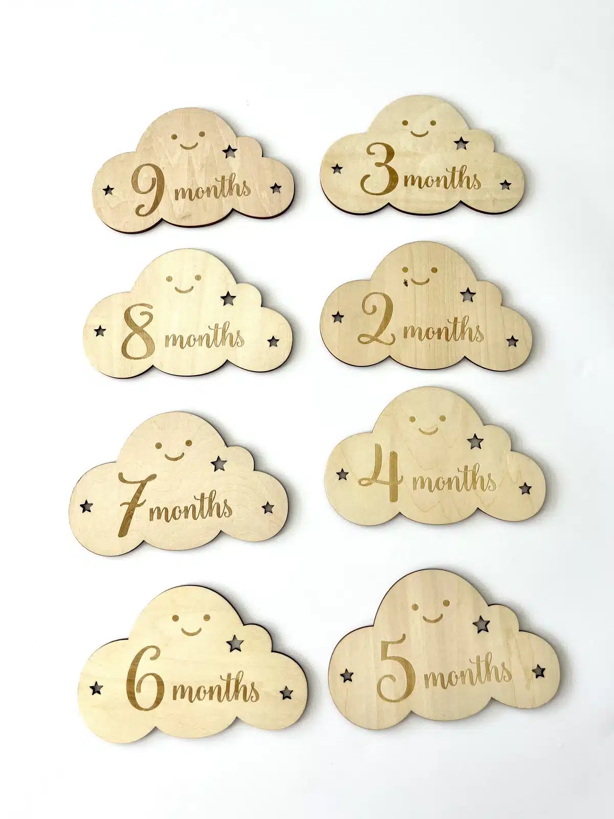 בואו לתעד את התפתחות הבייבי חודש בחודשו באמצעות סט העננים מעץ טבעי שלנו.